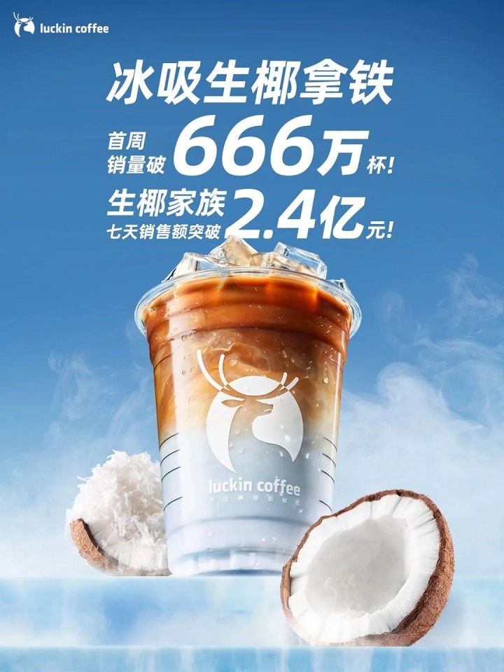 數(shù)據(jù)是最好的證明:近日,瑞幸官方宣布「生椰拿鐵」上市兩周年銷量已突破3億杯!最近另一款新品「冰吸生椰拿鐵」,上市一周銷量就突破了666萬(wàn)杯,打破了2022年10月由「生酪拿鐵」創(chuàng)下的上市一周659萬(wàn)杯的新品銷量紀(jì)錄。