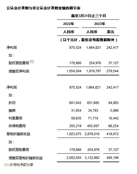 ? 調(diào)整后凈利潤(rùn)[2]為人民幣1,919.8百萬(wàn)元(279.5百萬(wàn)美元),較2022年同期的人民幣1,054.5百萬(wàn)元增長(zhǎng)82.1%。
