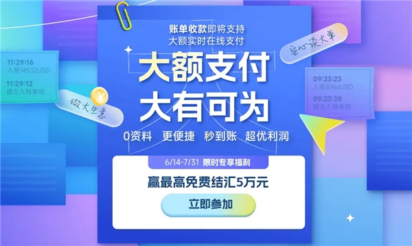 值得一提的是,6月14號(hào)至7月31號(hào)期間,PingPong福貿(mào)展開限時(shí)專享賬單收款福利:最高免費(fèi)提現(xiàn)5萬額度。用戶成功入賬1次可得免費(fèi)提現(xiàn)券1萬額度;成功入賬3次可得免費(fèi)提現(xiàn)券3萬額度;成功收取歐洲、北美買家付款且金額≥$1000,可得免費(fèi)提現(xiàn)券1萬額度。