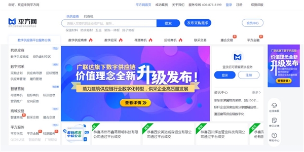 數(shù)字供應(yīng)鏈產(chǎn)品理念整體升級后,以“客戶為中心”的服務(wù)宗旨,通過“兩大解決方案”助力建筑供應(yīng)鏈行業(yè)內(nèi)企業(yè)進行數(shù)字化轉(zhuǎn)型及升級,圍繞平方網(wǎng)、平方招采等平臺,讓采購業(yè)務(wù)合規(guī)化、專業(yè)化、系統(tǒng)化,讓建材供應(yīng)商降低營銷成本和風險,增強企業(yè)的競爭力。