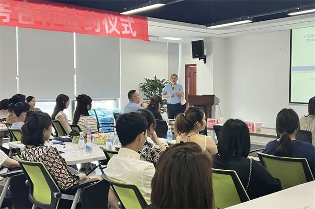 為了讓員工們快速地融入新的工作環(huán)境,盡快跟上新的工作步伐,在簽約會(huì)上,全億健康成都分部總經(jīng)理吳仲勇,副總經(jīng)理何英以及各部門負(fù)責(zé)人,分別從企業(yè)文化、組織架構(gòu)、前期工作籌備、個(gè)人成長經(jīng)歷等方面為大家做了分享。