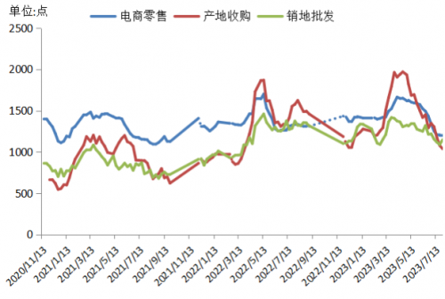 本期新華·宜昌秭歸臍橙產(chǎn)地收購價格指數(shù)報1038.48點,環(huán)比下跌3.69%,同比下跌34.10%;新華·宜昌秭歸臍橙電商價格指數(shù)報1199.13點,環(huán)比持平,同比下跌10.05%;新華(中國)臍橙銷地批發(fā)價格指數(shù)報1145.94點,環(huán)比上漲5.31%,同比下跌12.72%。