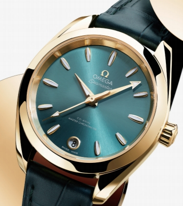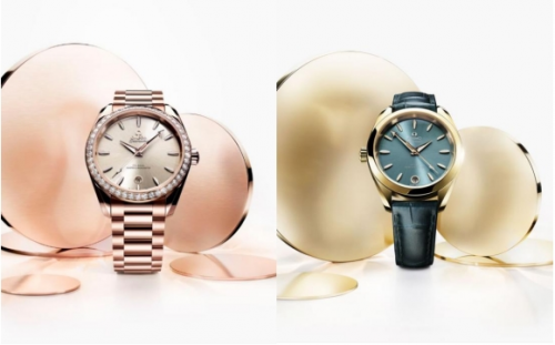 2023 年,品牌推出了兩款由歐米茄獨有的 18K 金打造的 Aqua Terra Shades 腕表, 璀璨閃耀的金色色調(diào)再度演繹了 Aqua Terra Shades 腕表的色彩精神。腕表內(nèi)部搭載歐米茄 8801 至臻天文臺機芯, 通過由瑞士聯(lián)邦計量研究院 (METAS) 核準的嚴苛 測試,其精準度、防磁性和整體性能均達到行業(yè)的更高標準。