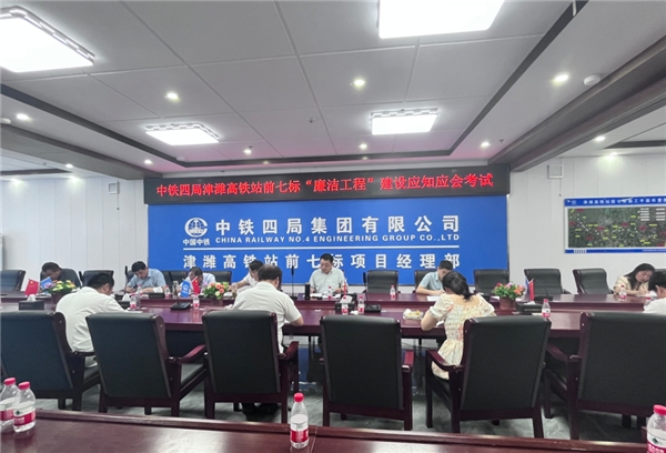 為進一步增強項目全員廉潔自律意識,積極響應(yīng)津濰高鐵“廉潔工程”建設(shè)工作全面開展,7月24日,中鐵四局一公司津濰高鐵站前七標項目黨總支組織項目經(jīng)理部全體員工開展“廉潔工程”建設(shè)應(yīng)知應(yīng)會知識測試活動,以考促學,以學促干,提升項目全體員工“廉潔工程”建設(shè)工作的主動性、積極性。