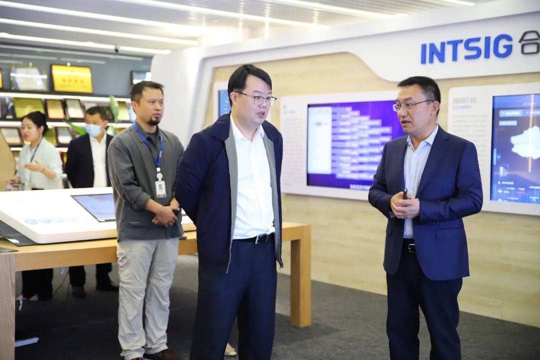 調研過程中,上海市金融工作黨委委員、市地方金融監(jiān)管局副局長管小軍一行首先參觀了市北高新園區(qū)企業(yè)AI體驗館,深入了解園區(qū)功能定位、特色產業(yè)布局、科技創(chuàng)新投入等情況。在園區(qū)大數據與人工智能領域代表性企業(yè)合合信息,公司董事長、總經理鎮(zhèn)立新博士詳細介紹了智能文字識別及商業(yè)大數據技術及產品。