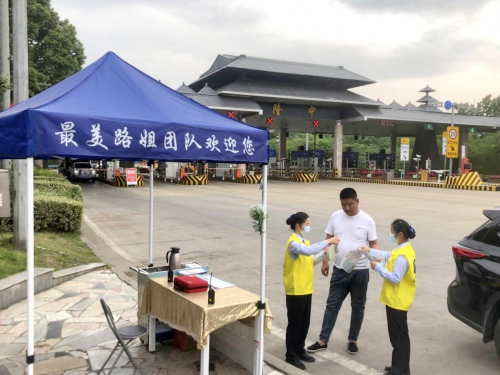 收費廣場的便民服務(wù)臺前,桌子上擺滿了高速地圖、住宿推薦、旅游攻略等各式各樣的宣傳手冊,緊急醫(yī)藥箱、簡易維修工具等一應(yīng)俱全。“你們收費站附近有修車的嗎?我的車半路出了點問題,現(xiàn)在得趕緊找個修車的地方?!币晃粍傁碌赖呢涇囁緳C搖下車窗,焦急地詢問道?!澳葎e著急,右邊大概100米左右就有一家汽修店,不遠的。天熱了給您拿瓶水喝,解解渴?!敝驹刚咭贿吇貞?yīng)著,一邊為司機送上了礦泉水。“現(xiàn)在出發(fā)去武漢的話,路上堵車嗎?”帶著一家人準備回家的王師傅咨詢道?!澳梢躁P(guān)注‘湖北e出行’微信公眾號,上面有實時路況信息,以后開車的時候都用得上?!睋乃緳C操作不熟練,志愿者還手把手地進行了演示。“你們這有地圖嗎?”“有開水嗎?”“有沒有多余的口罩啊?”……一張張燦爛的笑臉,一次次悉心的解答,志愿者們用真誠和真心,化作了高速路口最靚麗的風景。