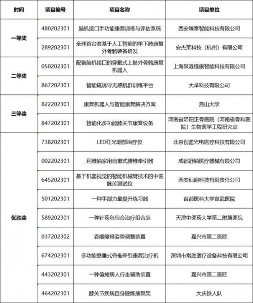 康復(fù)器械及輔具類別賽獲獎(jiǎng)項(xiàng)目名單