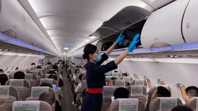 暑運(yùn)期間最大的特點(diǎn)就是客座率高,東航近期日均客座率都在80%左右;此外就是天氣復(fù)雜多變。相較于平日,在航前準(zhǔn)備過(guò)程中,金智音和乘務(wù)組們近期會(huì)格外關(guān)注目的地天氣情況、客座率、旅客構(gòu)成,特別是行李托運(yùn)情況等?!翱妥噬蟻?lái)了,上機(jī)的行李自然就多了。為了妥善放置旅客的行李,我們一方面會(huì)提前在保障群里同地面緊密溝通監(jiān)控行李數(shù)量,一方面也會(huì)在航前準(zhǔn)備會(huì)上對(duì)乘務(wù)員們擺放行李提前進(jìn)行詳細(xì)部署?!苯鹬且粢矔?huì)在機(jī)艙門口細(xì)心觀察,當(dāng)看到旅客行李箱較多,她還會(huì)以機(jī)上廣播的方式做好提醒,建議并幫助旅客將小型背包放置在座椅擋桿下方,確保每件行李都能放置妥善。