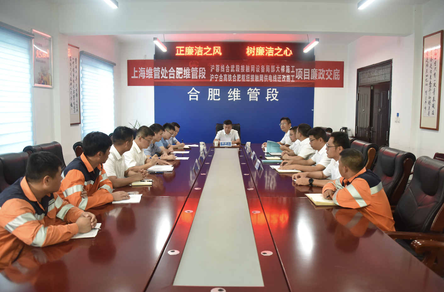 8月24日上午,中國中鐵電氣化局運管公司上海維管處合肥維管段對合肥維管段滬蓉線合武段接觸網(wǎng)設備局部大修施工項目和滬寧合高鐵合肥樞紐接觸網(wǎng)供電線遷改施工項目進行黨風廉政交底。單位各級領導和工程項目關鍵崗位人員共計19人參加廉政交底會議。