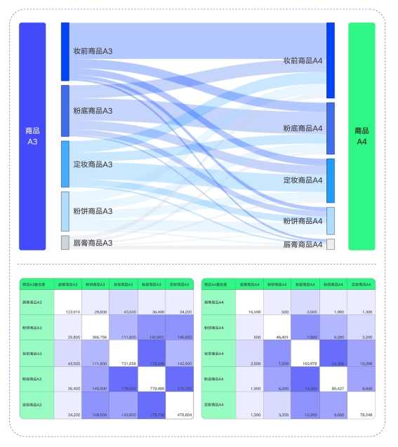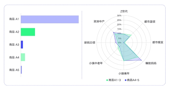 一方面,品牌可以通過比對不同商品SPU的5A人群重疊和流轉情況,找到商品多類目興趣人群、跨類目潛力購買人群和品牌忠誠人群等,擴寬人貨度量新視野;