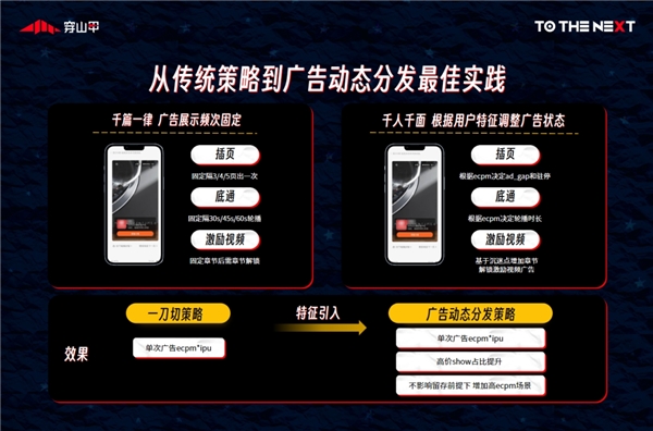 ▎閱讀行業(yè):?為避免過往千篇一律的廣告展示影響用戶體驗,穿山甲基于GroMore獨特的用戶價值分組能力,借助用戶所看書籍類型、閱讀速度、在線時長、累計觀看廣告數(shù)量等不同參數(shù),為開發(fā)者建立了一套用戶分層策略。通過“廣告動態(tài)分發(fā)”,根據(jù)用戶特征及時調(diào)整廣告狀態(tài),在不影響用戶留存的情況下進(jìn)一步提升廣告arpu,實現(xiàn)LTV最大化。