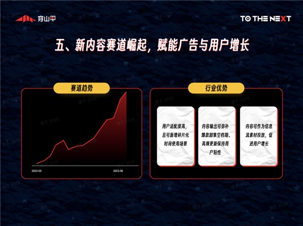 面對行業(yè)DAU增長放緩、整體市場預(yù)算下行的現(xiàn)狀,穿山甲視聽內(nèi)容行業(yè)持續(xù)推行傳統(tǒng)賽道的精細(xì)化運營能力、并探索新賽道突破創(chuàng)新,實現(xiàn)40%+的逆勢上漲。
