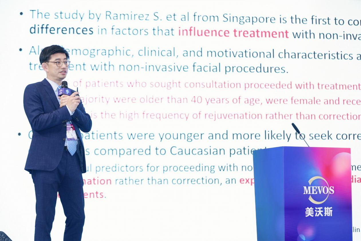 5月5日,美沃斯國際醫(yī)學(xué)美容大會特邀嘉賓——黃柏翰皮膚??泼廊葆t(yī)學(xué)診所黃柏翰醫(yī)師在分享全面部輪廓注射經(jīng)驗時提到,注射填充物能實現(xiàn)明顯面部改善效果,其中膠原蛋白填充劑因其不透明性,能夠有效降低丁達爾風(fēng)險,因而成為醫(yī)師首選填充物之一。黃醫(yī)師在演講中特別指出,東方人面部輪廓偏寬,醫(yī)師在進行臨床診療時,應(yīng)根據(jù)東方人面部老化特點以及求美者需求進行產(chǎn)品選擇和方案設(shè)計,盡量使臨床方案實現(xiàn)個性化、高效化。黃醫(yī)師表示,注射填充劑的量沒有公式可言,醫(yī)師要成為一名雕塑家,用雙手打造求美者未來的美麗!