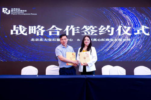 活動(dòng)現(xiàn)場,北京北大寶石鑒定中心與北京真心紅珠寶有限公司還舉辦了現(xiàn)場簽約儀式,雙方將在珠寶鑒定、數(shù)字化溯源以及從業(yè)人員專業(yè)培訓(xùn)等多個(gè)版塊開展豐富的合作。