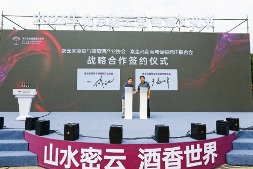 開幕式上,北京市密云區(qū)人民政府同煙臺張?jiān)F咸厌劸乒煞萦邢薰?#xff0c;密云區(qū)葡萄與葡萄酒產(chǎn)業(yè)協(xié)會同秦皇島葡萄與葡萄酒莊聯(lián)合會分別簽署戰(zhàn)略合作協(xié)議,通過增強(qiáng)與先進(jìn)地區(qū)的交流合作,提升密云葡萄酒的個(gè)性化和競爭力,同時(shí)為密云葡萄酒產(chǎn)業(yè)創(chuàng)新升級打造多場景的開放性平臺。