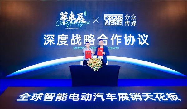 發(fā)布會現(xiàn)場,還進(jìn)行了CAS華車展與分眾傳媒深度戰(zhàn)略合作簽約儀式,華墨集團CEO王國平與分眾傳媒董事長江南春共同簽署了“助力全球智能電動汽車品銷雙贏”戰(zhàn)略合作。