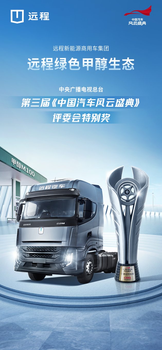2023年4月7日,在中央廣播電視總臺主辦的第三屆《中國汽車風(fēng)云盛典》頒獎典禮上,遠(yuǎn)程綠色甲醇生態(tài)榮獲評委會特別獎,成為首個以商用車為主體的獲獎企業(yè)。