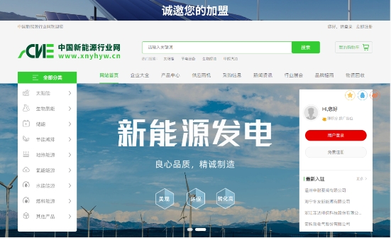 據(jù)悉,新能源行業(yè)網(wǎng)目前已正式上線,秉承開展新能源,筑造新生活的發(fā)展理念,新能源行業(yè)網(wǎng)致力成為行業(yè)新標桿,誠邀各大商家加盟入駐,壯大自身企業(yè)的同時也為中國新能源發(fā)展貢獻一份力量!