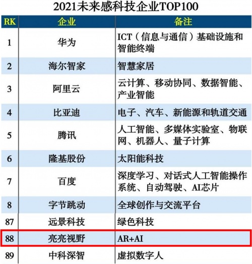 近日,互聯(lián)網(wǎng)周刊發(fā)布“2021未來感科技企業(yè)TOP100”榜單。榜單聚焦前沿科學技術,并且能夠把科技成果轉化為可觸達的產(chǎn)品。憑借七年高質量穩(wěn)健發(fā)展和商業(yè)模式創(chuàng)新,作為行業(yè)獨角獸的亮亮視野在AR+AI領域的深耕顯而易見,與華為、阿里云、比亞迪、騰訊、百度等中國一線科技公司一道入選榜單。