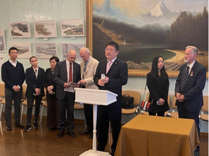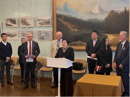 中俄人文合作發(fā)展中心理事長尹斌先生在發(fā)言中談到:“藝術(shù)家劉子輿先生在莫斯科生活多年,在此期間,他給很多俄羅斯人傳授中國的水墨,為發(fā)揚中國文化作出了巨大貢獻。”