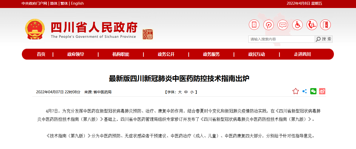 為充分發(fā)揮中醫(yī)藥在新型冠狀病毒肺炎預(yù)防、治療、康復(fù)中的作用,結(jié)合春夏時令變化和新冠肺炎疫情防治實(shí)踐。4月7日,四川省中醫(yī)藥管理局在《四川省新型冠狀病毒肺炎中醫(yī)藥防控技術(shù)指南(第八版)》基礎(chǔ)上,修訂并發(fā)布《四川省新型冠狀病毒肺炎中醫(yī)藥防控技術(shù)指南(第九版)》。其中,連花清瘟顆粒(膠囊)被推薦用于臨床治療期外感風(fēng)熱證和風(fēng)熱夾濕證的治療。連花清咳片被推薦用于醫(yī)學(xué)觀察期咽干、咽痛、咳嗽,或伴發(fā)熱等癥狀的治療。