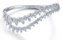 這款手鐲的曲線宛如雕塑品,搖曳間,以「幻覺鑲嵌法」呈現(xiàn)的鉆石,