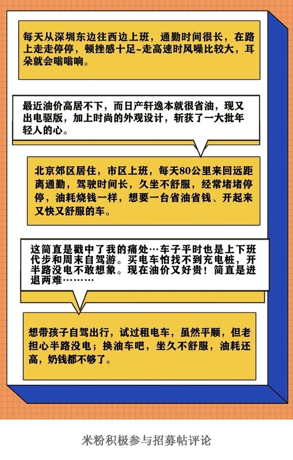 參與試駕的3位米粉代表分別從周邊游微旅行、候鳥式遠(yuǎn)距離通勤、高速出行等真實(shí)場(chǎng)景出發(fā),產(chǎn)出了深度試駕體驗(yàn)帖,解決了用戶城市及高速駕駛的油耗高、動(dòng)力響應(yīng)遲滯、行駛頓挫、噪音困擾等難題,帶給用戶全新的純電試駕體驗(yàn),呈現(xiàn)出了軒逸電驅(qū)版e-POWER“快、順、靜、省”的長(zhǎng)短距離無痛點(diǎn)出行體驗(yàn)。