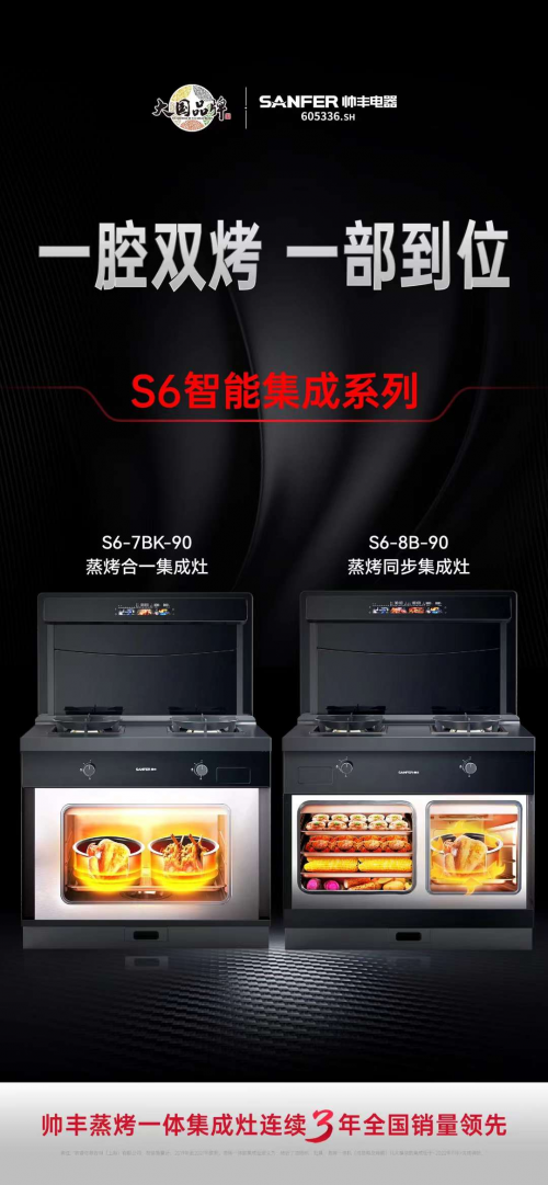 近日,大國品牌帥豐電器就從消費需求出發(fā),創(chuàng)新推出S6智能集成系列S6-7BK-90蒸烤合一集成灶和S6-8B-90蒸烤同步集成灶,將蒸烤功能、顏值、智能化、大火力、油煙吸凈率、品質(zhì)六大維度能力全部點滿,有望成為風(fēng)靡消費市場的新一代爆款好物。