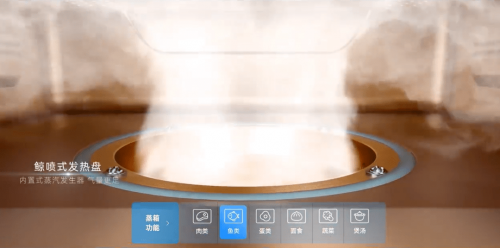 在蒸上,帥豐S6智能集成系列升級鯨噴式發(fā)熱盤,160mm雙環(huán)加熱,蒸汽量更足,腔內(nèi)溫度更均勻,在更短的時間內(nèi)用高溫蒸汽分子將食物包裹住,保留食材營養(yǎng)。