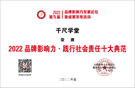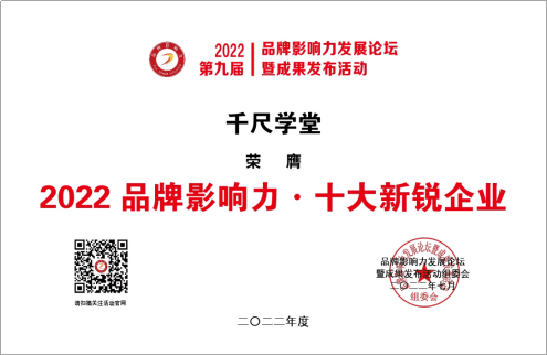 近日,由《發(fā)現(xiàn)品牌》欄目組、對外經(jīng)濟貿(mào)易大學(xué)中國國際品牌戰(zhàn)略研究中心、《中國企業(yè)報》集團主辦的2022品牌影響力發(fā)展論壇暨成果發(fā)布活動正式舉辦?;顒右浴按罅Πl(fā)展品牌戰(zhàn)略促進經(jīng)濟高質(zhì)量發(fā)展”為主題。圍繞中國品牌創(chuàng)建行動,培育新型消費,實施領(lǐng)航企業(yè)培育工程,促進專精特新小巨人企業(yè)培育等內(nèi)容展開分析探討。在著重推介具有優(yōu)秀成長性或影響力的品牌環(huán)節(jié)中,千尺學(xué)堂榮膺“2022品牌影響力·十大新銳企業(yè)”、“2022品牌影響力·踐行社會責(zé)任十大典范”兩項大獎。