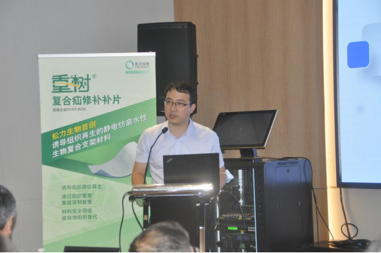 松力生物聯(lián)合創(chuàng)始人、副總經(jīng)理?xiàng)罾蚍窒砹怂闪ι锏能浗M織誘導(dǎo)性生物材料的研究進(jìn)展,她介紹稱,松力生物可再生復(fù)合疝修補(bǔ)補(bǔ)片由松力生物自主研發(fā)的靜電紡親水性軟組織誘導(dǎo)性生物材料制成,此外,分享了這種新型復(fù)合生物材料在動(dòng)物實(shí)驗(yàn)中成功誘導(dǎo)骨骼肌、韌帶、肩袖、子宮壁、腸壁組織再生的研究成果。