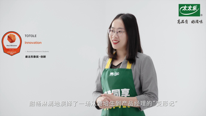 產(chǎn)品經(jīng)理Grace:太太樂作為中國雞精品類的領(lǐng)“鮮“者,其創(chuàng)立之初就自帶創(chuàng)新的基因。34年后的今天,太太樂正在開發(fā)更多滿足消費者需求的新產(chǎn)品,我也有幸成為了其中的參與者。在工作中創(chuàng)造不同的同時,得益于定制化的職業(yè)發(fā)展路徑,我成功從一名管培生蛻變成了獨當一面的產(chǎn)品經(jīng)理,獨立負責一個產(chǎn)品系列和領(lǐng)導一支團隊。作為這種鼓勵創(chuàng)新、擁抱人才的文化的受益者,我也會在接下來的團隊管理中支持晚輩的新點子,為他們提供職業(yè)發(fā)展指導,助力他們成為更好的自己。