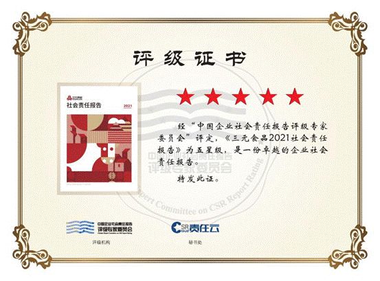 近年來,三元食品始終保持與利益相關(guān)方充分交流與溝通。2022年,三元食品發(fā)布的第8份年度社會責(zé)任報告,并連續(xù)四年獲評中國企業(yè)社會責(zé)任報告評級專家委員會"五星級"評價。評級專家委員會評價,《北京三元食品股份有限公司2021社會責(zé)任報告》是一份卓越的企業(yè)社會責(zé)任報告。