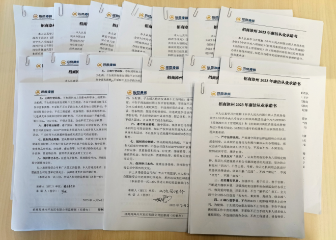 該公司紀(jì)委從發(fā)布簽訂《招商漳州2023年廉潔從業(yè)承諾書(shū)》后,黨委領(lǐng)導(dǎo)班子成員帶頭簽訂,11個(gè)部門和下屬企業(yè)黨支部,積極組織黨員干部員工認(rèn)真學(xué)習(xí)承諾內(nèi)容,實(shí)現(xiàn)210位在崗干部員工人人參與、全員覆蓋,進(jìn)一步強(qiáng)化自覺(jué)遵守廉潔從業(yè)規(guī)定的思想自覺(jué)和行動(dòng)自覺(jué)。