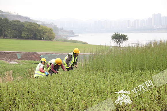 工人正在進行綠化工程施工。華龍網(wǎng)-新重慶客戶端 首席記者 李文科 攝