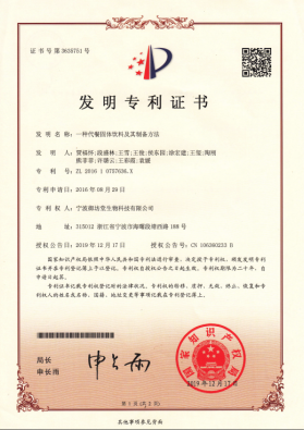 國家發(fā)明專利證書-肽素乳固體飲料及其制備方法