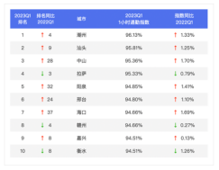 人口流動(dòng)與交通的發(fā)展密不可分。同比2022第一季度,2023第一季度百城跨城遷徙規(guī)模指數(shù)都增,平均漲幅達(dá)到47.64%。最高漲幅城市為天津,漲幅達(dá)139.67%;北京、?安以漲幅116.20%、100.63%位居漲幅榜第二、第三。