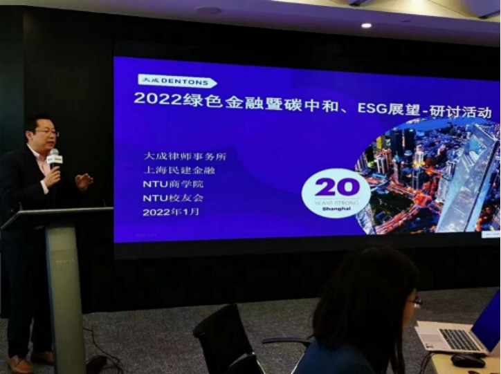 2022年1月15日,大成(上海)律師事務(wù)所聯(lián)合中金財(cái)富、民建上海金融工委、NTU商學(xué)院校友,共同舉辦“2022綠色金融暨碳中和、ESG展望研討活動(dòng)”。