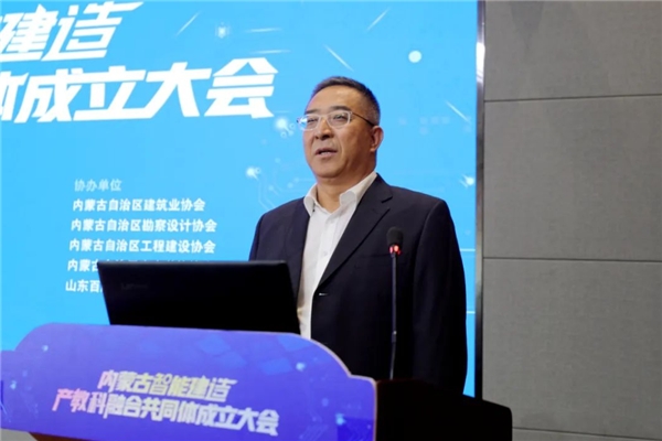 王剛講話,他指出,內(nèi)蒙古智能建造產(chǎn)教科融合共同體的成立,標志著內(nèi)蒙古自治區(qū)智能化建設(shè)領(lǐng)域的職業(yè)教育邁入了一個新的發(fā)展階段,對加快內(nèi)蒙古自治區(qū)建筑行業(yè)轉(zhuǎn)型升級,推動內(nèi)蒙古自治區(qū)經(jīng)濟發(fā)展具有重要意義,希望共同體以及各成員單位把握綠色建材、裝配式建筑這一大發(fā)展方向,注重智能化與各種綠色低碳材料、工業(yè)化部品部件、清潔能源和超低能耗建筑的結(jié)合,為企業(yè)和社會培養(yǎng)、輸送更多高素質(zhì)技術(shù)技能人才,在校企合作中幫助企業(yè)、行業(yè)孵化更加成熟的新技術(shù)體系,共同提升內(nèi)蒙古智能建造產(chǎn)教科融合共同體對建設(shè)現(xiàn)代產(chǎn)業(yè)體系的支撐作用。