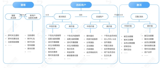 此外,文娛平臺(tái)可以基于人群偏好與用戶行為表現(xiàn),構(gòu)建一套精細(xì)化消息推送策略,比如從潛客到活躍到召回,每個(gè)階段推送不同的內(nèi)容及活動(dòng),例如潛客主要推送新手禮包、首次充值優(yōu)惠等;活躍用戶主要推送個(gè)性化內(nèi)容及互動(dòng)激勵(lì)等;對(duì)于沉默用戶推送限時(shí)活動(dòng)和用戶關(guān)懷等。