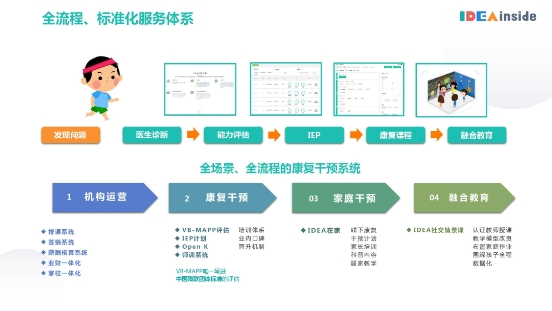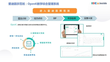 只需一間20平米的示范教室,運用標準化的服務(wù)方案,就可以把深耕行業(yè)多年沉淀的IDEA教學模式帶回機構(gòu)/學校/幼兒園/醫(yī)療單位,進行數(shù)字化、標準化的康復干預。一個標準的、數(shù)字化管理的愛迪因教學示范教室,可以復制到任何一個線下中心,開展專業(yè)兒童康復干預。