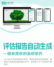評估環(huán)節(jié) 評估報告自動生成!使用獨家授權(quán)的自研軟件——VB-MAPP評估系統(tǒng)進行評估,系統(tǒng)自動生成評估報告,展現(xiàn)孩子現(xiàn)階段的真實能力水平,指導孩子下個階段的干預目標。