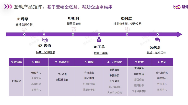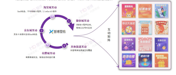 同時,慧博「雪鸮」的互動營銷產(chǎn)品是基于用戶營銷全鏈路,從種草、咨詢、加購、下單、付款、售后整個閉環(huán)流程,最大程度的完成用戶價值轉(zhuǎn)化,提升用戶忠誠度。