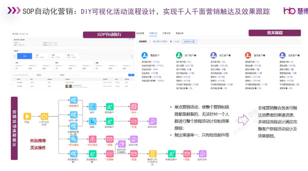 除此之外,也可以通過慧博「雪鸮」智能營銷平臺內(nèi)的SOP自動化營銷、會員全生命周期各觸點關(guān)懷提醒等智能營銷功能,幫助集團實現(xiàn)自動化運營及營銷,提升運營效率。