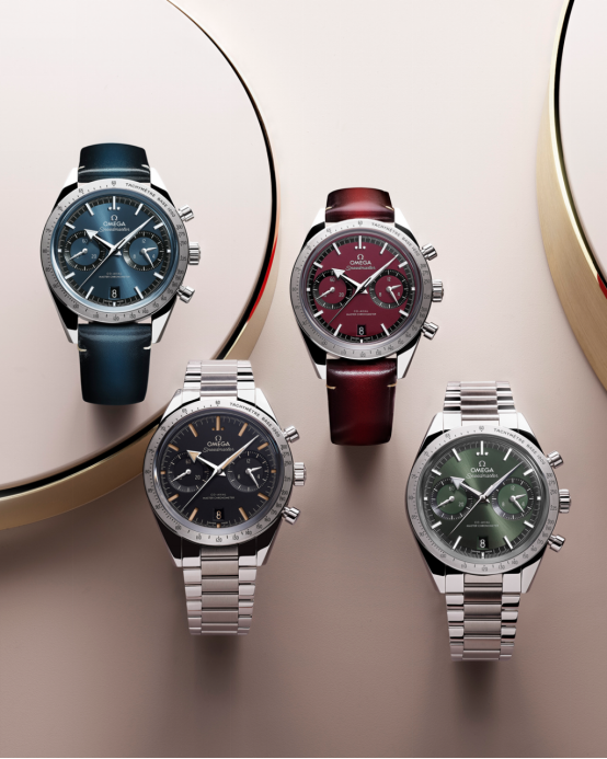 新品超霸’57腕表共推出八款,有四種表盤顏色可選,分別為黑、藍(lán)、勃艮第紅、綠色,有搭配鋼鏈和皮表帶的不同選擇。鋼鏈繼承了1957年首枚超霸腕表的三節(jié)式樣,皮表帶是與表盤顏色相呼應(yīng)的小牛皮,外觀總體上偏復(fù)古風(fēng)。