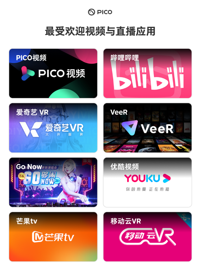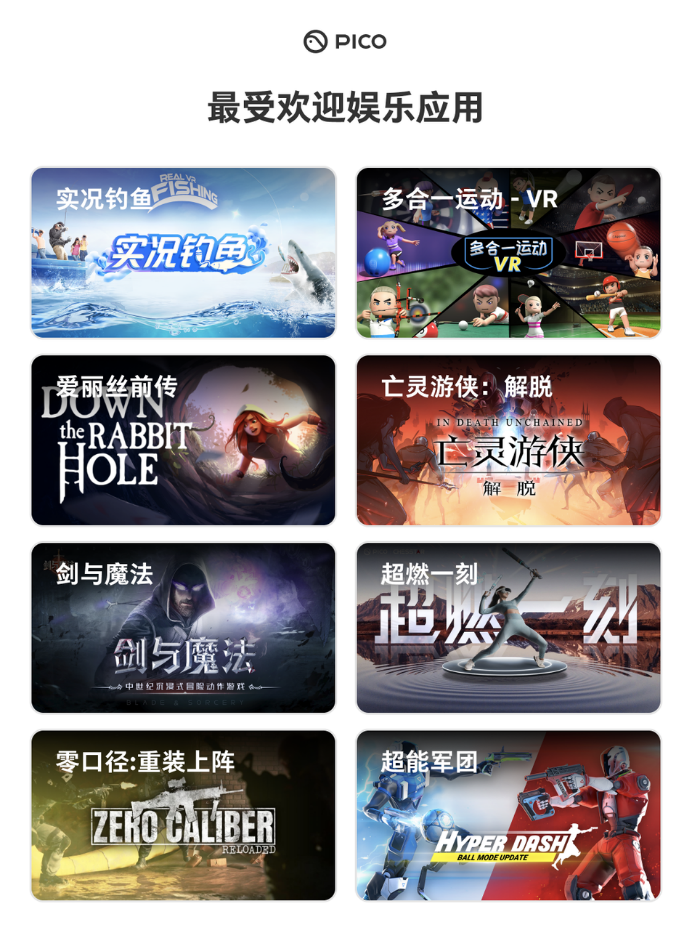 作為頭部XR品牌,PICO始終致力于幫助VR開(kāi)啟大眾化之路,而豐富且優(yōu)質(zhì)的內(nèi)容和應(yīng)用生態(tài),是吸引大眾消費(fèi)者購(gòu)買VR、使用VR的關(guān)鍵。近兩年全球VR技術(shù)日漸成熟,產(chǎn)品快速迭代,PICO作為國(guó)內(nèi)最完善的VR內(nèi)容平臺(tái),亦在持續(xù)完善內(nèi)容生態(tài),積極加速與第三方的合作腳步,并在自制內(nèi)容方面大力投入,致力打造國(guó)內(nèi)應(yīng)用最豐富、最優(yōu)質(zhì)的VR內(nèi)容平臺(tái)。迄今為止PICO應(yīng)用商店已擁有超過(guò)200款國(guó)內(nèi)外優(yōu)質(zhì)的VR應(yīng)用。