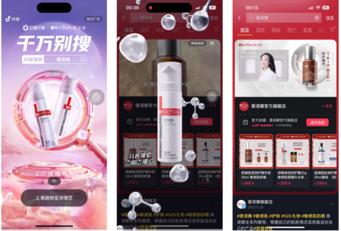 銷售轉(zhuǎn)化始終是品牌的終極目標(biāo),品牌通過電商品專與熱榜、開屏等聯(lián)動,在直播或非直播兩種場景下,可以實現(xiàn)品牌信息的多維展示,以及直播間的短鏈引流,促成更快速、直接的轉(zhuǎn)化。