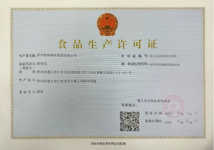 1月11日,南將酒業(yè)集團新車間第一輪次順利出酒,產(chǎn)量達標品質(zhì)好。同時,南將酒業(yè)集團新的食品生產(chǎn)許可證成功下證。
