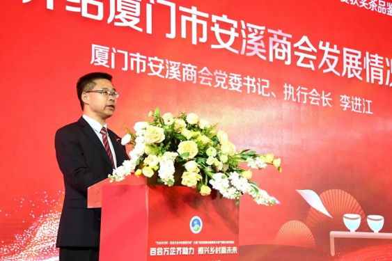 安溪縣縣長劉永強(qiáng)在講話中表示,20多年來,廈門市安溪商會(huì)團(tuán)結(jié)帶領(lǐng)在廈鄉(xiāng)親弘揚(yáng)愛拼敢贏、靠自己的骨頭長肉的精神,拼搏商海,盡顯風(fēng)采,在廈門特區(qū)留下了耀眼的茶鄉(xiāng)印記。難能可貴的是商會(huì)多年來傾心傾力,支持推動(dòng)家鄉(xiāng)茶產(chǎn)業(yè)發(fā)展,舉辦“廈門市安溪商會(huì)杯”茶王賽已成為規(guī)格最高的安溪鐵觀音茶葉賽事之一,激勵(lì)廣大茶農(nóng)茶人傳承匠心、用心制茶,提升安溪鐵觀音的美譽(yù)度和影響力。安溪是世界名茶鐵觀音發(fā)源地,中國烏龍茶之鄉(xiāng),近年來,安溪縣委縣政府緊扣三茶統(tǒng)籌,全面推進(jìn)茶產(chǎn)業(yè)高質(zhì)量發(fā)展。得益于茶產(chǎn)業(yè)的蓬勃發(fā)展,安溪走上了高質(zhì)量發(fā)展快車道,縣域綜合實(shí)力躍升至全國百強(qiáng)縣第53位,投資潛力第11位,已成為高新技術(shù)產(chǎn)業(yè)高地、宜居宜業(yè)的發(fā)展福地。今年,安溪縣委縣政府錨定GDP突破千億,緊扣6個(gè)工作抓手,奮力實(shí)施七大行動(dòng),加快全面建設(shè)具有茶鄉(xiāng)特色的現(xiàn)代化中等城市。真誠期待廈門市安溪商會(huì)和廣大鄉(xiāng)賢以各種方式參與其中,同時(shí)竭誠歡迎各界朋友到安溪品茗觀光、投資興業(yè)、共贏未來。
