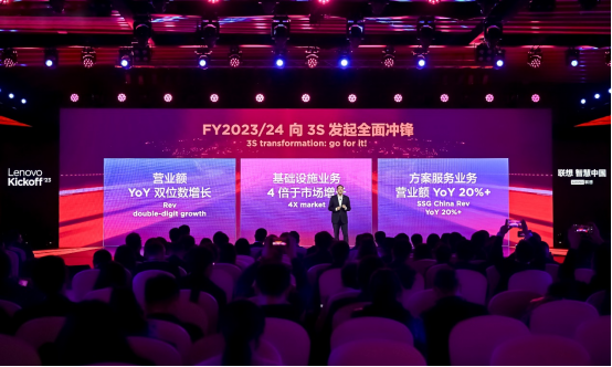 其中,在3S轉(zhuǎn)型方面,方案服務業(yè)務營收在中國區(qū)整體營收中占比已超過10%,順利從轉(zhuǎn)型域進入績效域,同時擁有包括xCloud混合云、ESG低碳園區(qū)、多擎云桌面、魔方智慧客服等多個關(guān)鍵性通用解決方案。智能基礎設施業(yè)務中,服務器、存儲、軟件定義等產(chǎn)品和方案穩(wěn)步增長,今年2月8日還針對中國客戶需求,發(fā)布了面向中國市場的聯(lián)想問天服務器新品牌,開啟聯(lián)想服務器的復興之旅。智能設備業(yè)務不斷進步,上個財年聯(lián)想商用平板電腦成功支持了國家級重要會議,聯(lián)想智能會議大屏首次進入市場前三。